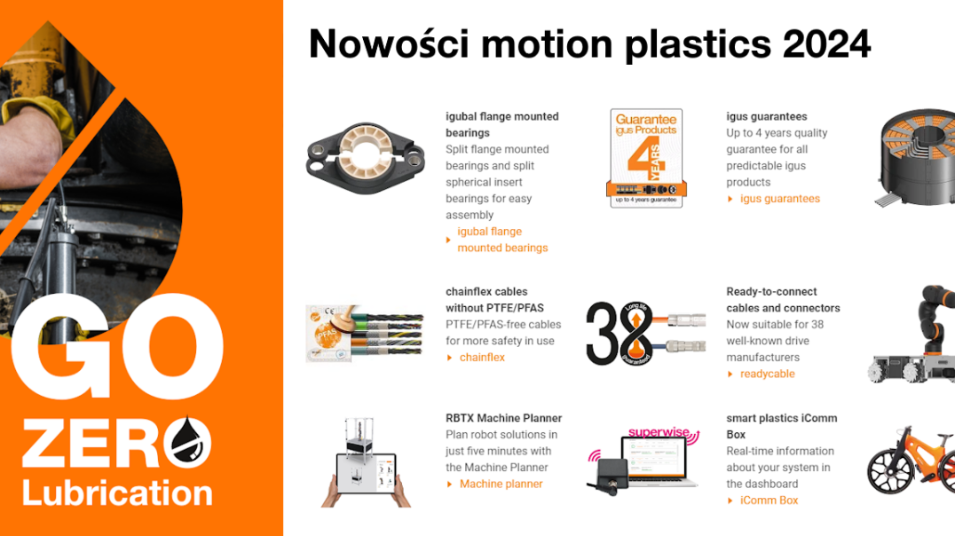 Odczarujemy najważniejsze innowacje spośród aż 247 nowych produktów oraz uzupełnień asortymentu wykonanych z innowacyjnych komponentów i materiałów, a także pionierskich technologii, takich jak sztuczna inteligencja, czy igus Go - aplikacja, dzięki której błyskawicznie znajdziesz odpowiednie produkty.