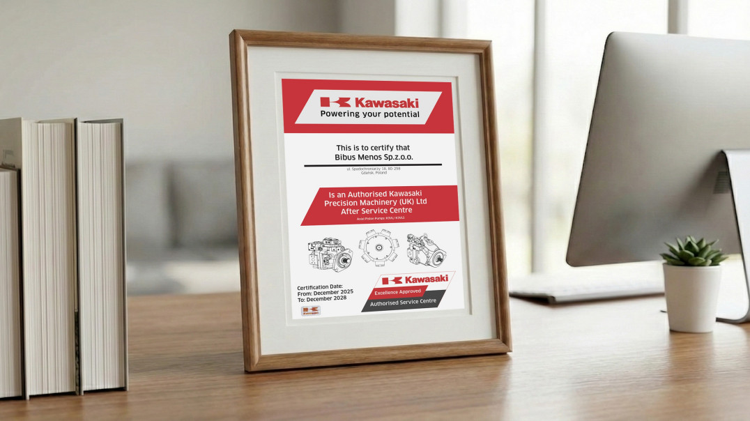 Nowa autoryzacja nadaje BIBUS MENOS wyłączne uprawnienia do serwisowania wskazanych pomp Kawasaki w Polsce. Firma została uznana za autoryzowanego partnera serwisowego przez Kawasaki Precision Machinery i uzyskała status Excellence Approved, co potwierdza najwyższy standard obsługi. Zakres uprawnień obejmuje specjalistyczne pompy wielotłoczkowe osiowe z serii K3VL i K3VLS.