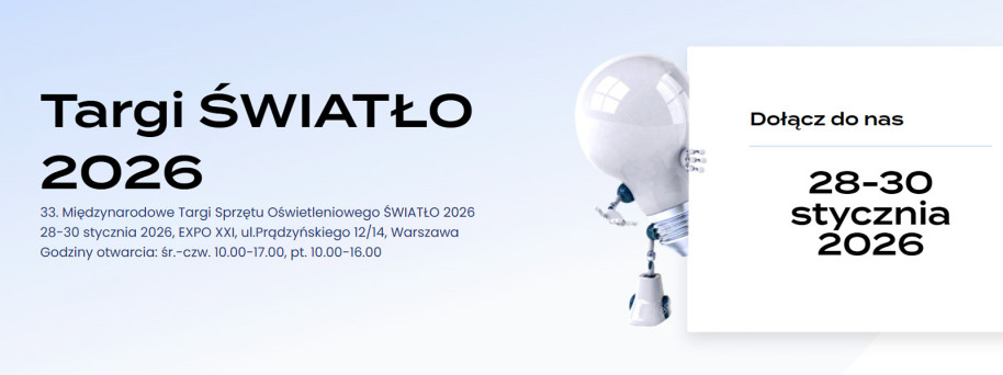 Targi ŚWIATŁO 2026 odbędą się w dniach 28-30 stycznia 2026 r. na terenie EXPO XXI przy ul. Prądzyńskiego 12/14 w Warszawie.