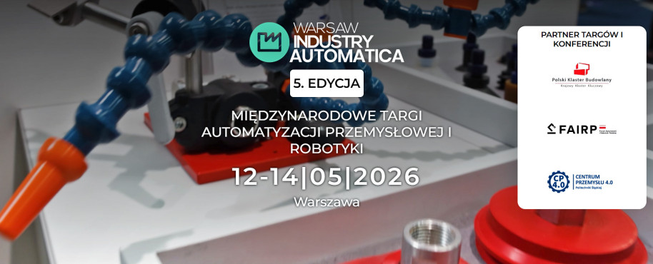5. edycja Międzynarodowych Targów Automatyzacji Przemysłowej i Robotyki WARSAW INDUSTRY AUTOMATICA 2026 odbędzie się w dniach 12-14 maja 2026 r. na terenie Ptak Warsaw Expo - Al. Katowicka 62, 05-830 Nadarzyn.