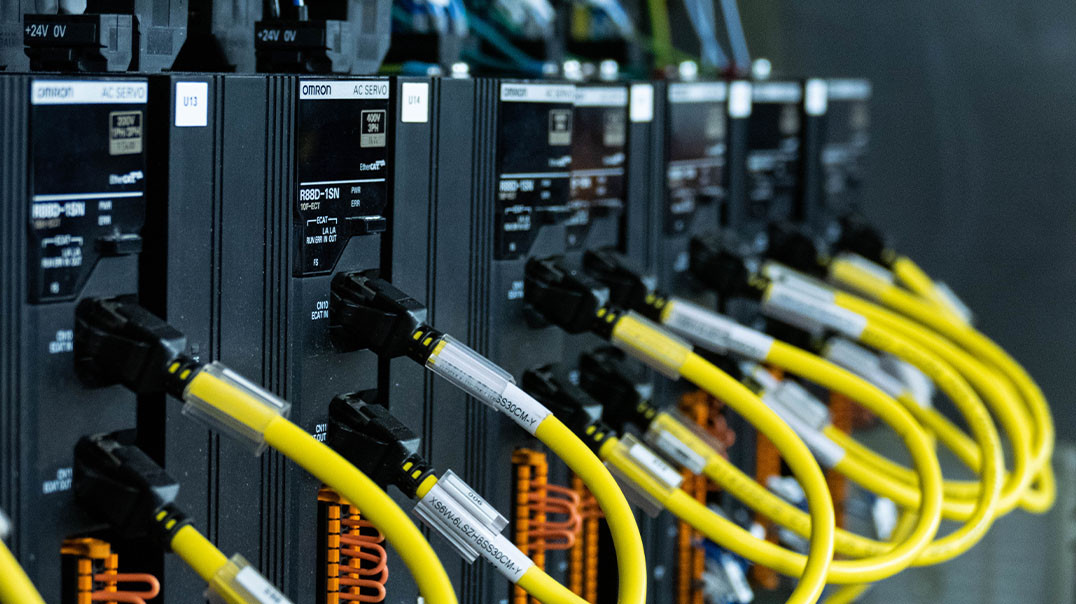 - Sterowanie liniowe przy użyciu sterownika OMRON NJ-5, w zestawie serwonapędy serii-1S, falowniki MX2, zintegrowany system bezpieczeństwa-NX i 15-calowy interfejs HMI serii-NA