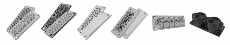 Seria MC to zaawansowane przepusty kablowe wielootworowe o podwójnym uszczelnieniu. Umożliwiają prowadzenie przewodów przez elastyczną membranę bez konieczności stosowania złączy. Konstrukcja zapewnia pełną ochronę przed pyłem i wodą, zgodnie ze stopniem IP66/67. Montowane są w standardowych wycięciach FL21, a duża gęstość otworów umożliwia prowadzenie wielu kabli na niewielkiej powierzchni montażowej. Wzmocniona metalem rama podnosi sztywność i odporność mechaniczną, co szczególnie istotne w instalacjach narażonych na wibracje lub podwyższone obciążenia środowiskowe.