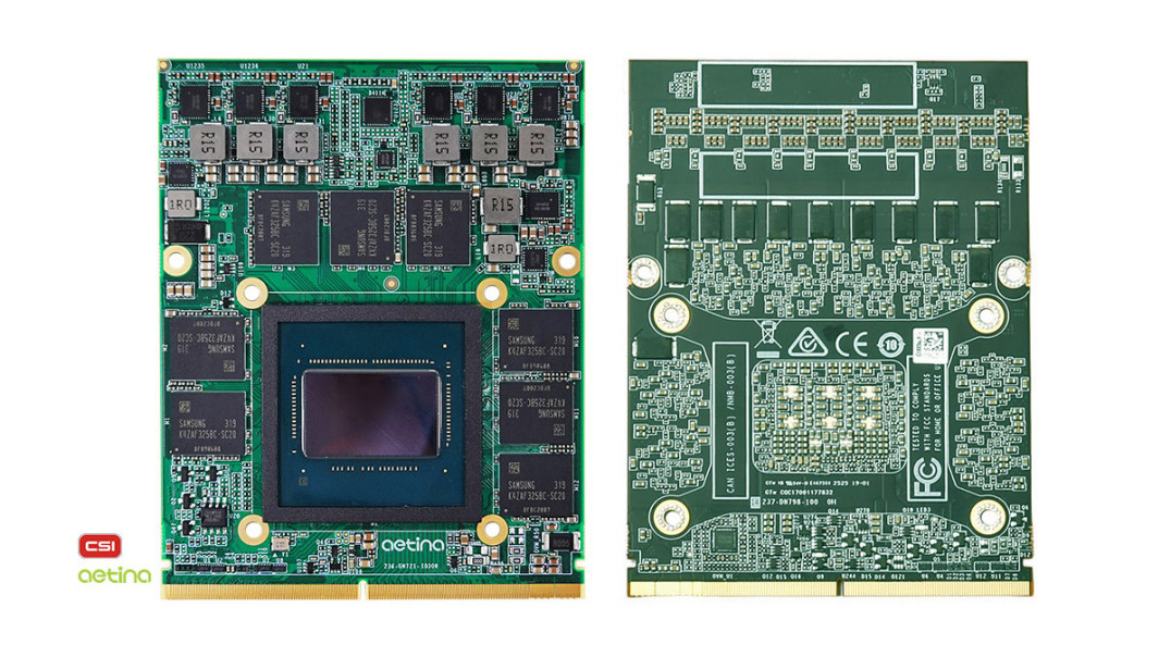 Interfejs modułu to PCIe Gen4x16 poprzez tzw. „golden finger”, co oznacza, że moduł może być bezpośrednio podłączony do płyty głównej lub dedykowanego hosta z magistralą PCI Express nowej generacji, zapewniając maksymalną przepustowość danych między GPU a hostem. Sam format MXM 3.1 jest standardem przemysłowym, który sprawdza się tam, gdzie klasyczna karta graficzna PCIe byłaby zbyt dużym, energochłonnym lub niestabilnym rozwiązaniem — na przykład w robotach mobilnych, pojazdach autonomicznych czy systemach wizyjnych pracujących w warunkach przemysłowych.