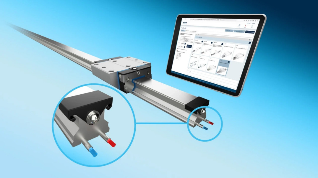 Ekonomiczną opcję regulacji temperatury można szybko i łatwo wybrać w konfiguratorze szyn prowadzących online. Każdy z czterech rozmiarów od 35 do 65 jest dostępny w dwóch formatach: z rowkiem i bez rowka. Opcjonalne kieszenie zwrotne umożliwiają ustawienie przewodów chłodzących pod kątem 180° wewnątrz szyny. Po konfiguracji dane CAD i dokumentację techniczną można pobrać bezpłatnie, a profilowaną szynę można zamówić bezpośrednio w sklepie internetowym Rexroth.