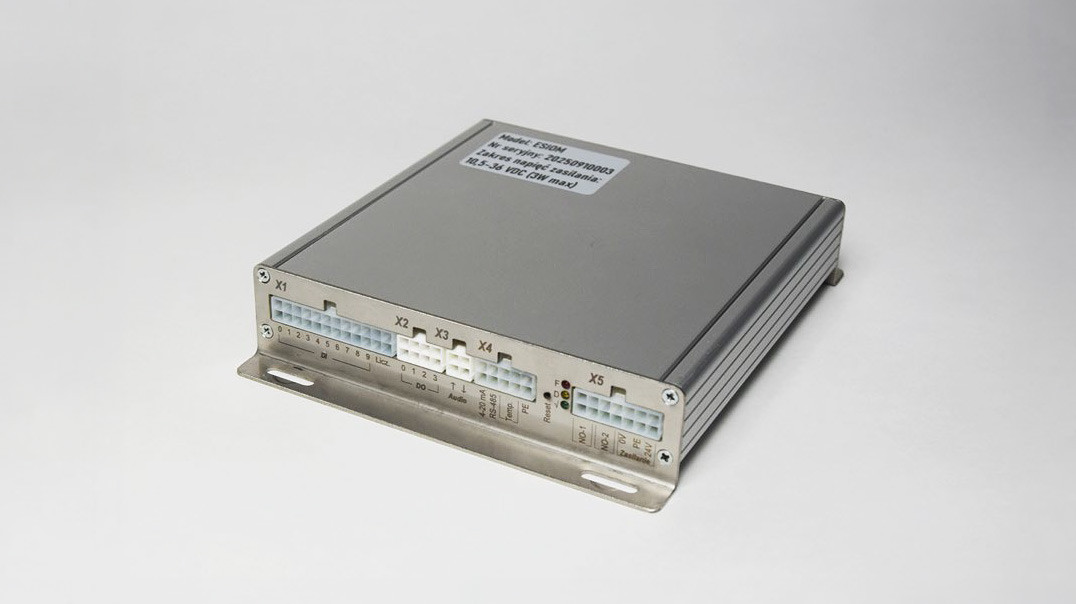 - ESIOM jako wsparcie sterowania: dzięki interfejsom RS-485, CAN i Ethernet, moduł ESIOM idealnie uzupełnia systemy sterowania. Oferuje m.in. wejście miernika częstotliwości impulsów cyfrowych oraz zaawansowany odometr i prędkościomierz (obsługujący trzy typy sygnałów: 0-16 V, 6-13 V, 6-13 mA), co pozwala na precyzyjny monitoring parametrów pojazdu w czasie rzeczywistym. Moduł zarządza też energią peryferiów przez przekaźniki sterujące zasilaniem tablic (2x8 A) oraz przekaźnik załączenia toru audio.