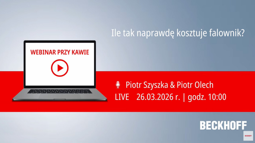 Firma Beckhoff organizuje webinar omawiający wykorzystywanie falowników. Dołącz do spotkania! W czasie 40 minut zobaczysz, jak zamienić ukryte koszty w realne oszczędności dla kolejnego projektu.
