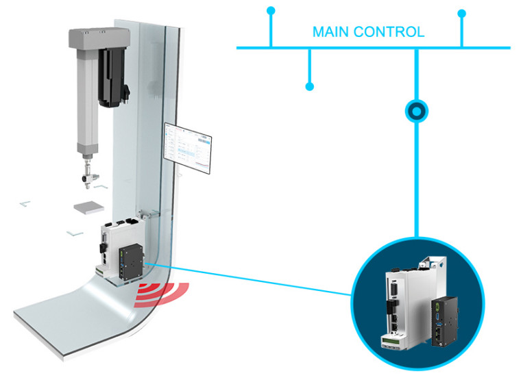 Jeśli automatyczna stacja prasowania wykryje nowy wariant za pośrednictwem RFID, sterowanie linią przesyła odpowiednie parametry, takie jak skoki, siły i tolerancje do serwoprasy.