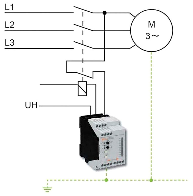 Firma Dold oferuje specjalne urządzenia kontroli izolacji – serię VARIMETER IMD do monitorowania wyłączonych obciążeń, nawet w systemach uziemionych. Monitory izolacji MK 5880N i MH 5880 są podłączone do napędu w taki sposób, że kontrolują rezystancję izolacji tylko wtedy, gdy napęd został odłączony od sieci. W tym celu monitor izolacji jest podłączony poprzez styk rozwierny stycznika lub wyłącznika i działa tylko wtedy, gdy napęd został odłączony. W przeciwnym razie monitor izolacji wywołałby fałszywy alarm podczas pracy.
