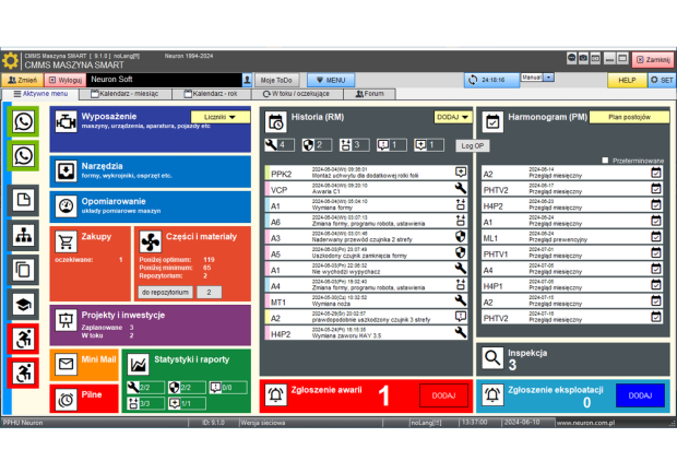 Żaden liczący się na rynku program nie spowoduje, że koszty, czas i liczba awarii same cudownie spadną, a harmonogramy same się "zepną". Tego mogą dokonać jedynie ludzie odpowiedzialni za utrzymanie ruchu. Oprogramowanie ma w tym zadaniu im pomóc, czyli: uprościć pracę, wspomóc komunikację i odrobinę zdyscyplinować, a przede wszystkim pomóc w zlokalizowaniu problemów i optymalizacji kosztów, dzięki analizie zebranych informacji. Dostępny w nazwie prezentowanego oprogramowania człon SMART z jednej strony oznacza inteligentny, a z drugiej strony sprytny. I to nie byle jak - jest tu mowa o sprycie polegającym na maksymalnym ograniczeniu "księgowości". Z pewnością automatyk to nie "księgowy", który cały dzień siedzi przy komputerze. Dla automatyka obsługa systemu to tylko zbędna, niepotrzebna nikomu praca. Oprogramowanie CMMS Maszyna SMART oferuje kilka adekwatnie przemyślanych uproszczeń, dzięki którym jest prosty w obsłudze i nie wymaga zatrudniania dodatkowych osób w celu wdrożenia oraz bieżącego utrzymania.