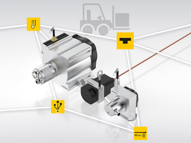 W przypadku serii DWE spotykane są modele enkoderów o stopniach ochrony: IP65, IP67 i IP69K, działające w temperaturze: od -20 do 85°C. Cechowane przez liniowość rzędu ±0,05% różnią się przede wszystkim metodą realizacji pomiarów (potencjometryczna, magnetyczna bądź optyczna). Do wyboru jest w sumie 148 enkoderów, które można z łatwością wykorzystać w szerokiej gamie aplikacji. Na szczególną uwagę zasługują enkodery potencjometryczne, które wyróżnia znakomity poziom ochrony. Z kolei enkodery magnetyczne i optyczne zawierają swobodnie programowalne interfejsy, takie jak: IO-Link, CANopen oraz Profinet. Przygotowano w sumie 6 wersji opisywanych podzespołów - dla każdej z nich zapewnia się wyjścia analogowe, przy dostępnych długościach: 1, 2 lub 3 m. Typowe zastosowania enkoderów linkowych z serii DWE obejmują: systemy regałowe w intralogistyce, pojazdy AGV oraz rozwiązania z teleskopowymi systemami podnoszenia.