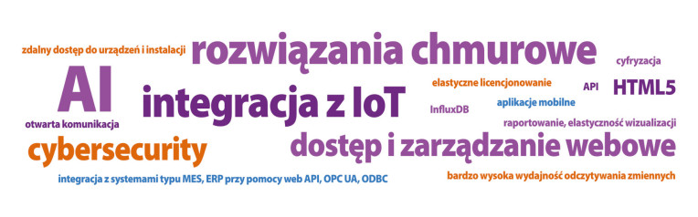 Wśród innych nowości pojawiają się takie elementy, jak technologia HTML5, która usprawnia tworzenie uniwersalnych interfejsów niezależnych od platformy sprzętowej, otwarte API, cyfryzacja procesów, elastyczne modele licencjonowania, a także integracja z nadrzędnymi systemami MES i ERP przy wykorzystaniu nowoczesnych protokołów w rodzaju OPC UA, ODBC czy Web API. Interesującym sygnałem jest też pojawienie się wskazań na InfluxDB – nowoczesną bazę danych czasowych, wykorzystywaną w systemach o bardzo wysokiej wydajności rejestrowania zmiennych.