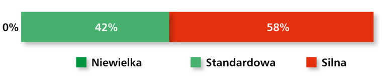 Nie zmienia się natomiast ogólna charakterystyka konkurencji. Zdecydowana większość badanych określiła ją jako silną (58%) lub "standardową" (42%), przy czym żaden z respondentów nie wskazał na "niewielką" konkurencję (rys. 3). Wyniki te potwierdzają, że polski rynek obudów i szaf przemysłowych pozostaje mocno nasycony, a lokalni i zagraniczni dostawcy rywalizują głównie poprzez specjalizację produktową, elastyczność oferty i relacje z odbiorcami OEM oraz integratorami.