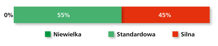 Jeżeli chodzi o charakter konkurencji, dominuje ocena "standardowa" (55%) oraz "silna" (45%), przy całkowitym braku wskazań na konkurencję "niewielką" (rys. 12). Potwierdza to, że rynek złączy pozostaje nasycony, a dostawcy muszą konkurować nie tylko ceną, lecz także jakością, dostępnością i kompleksowością oferty.