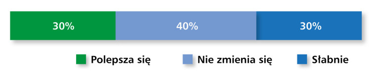 Oceny dotyczące koniunktury potwierdzają podział nastrojów – 30% ankietowanych wskazało na jej poprawę, 40% uznało, że pozostaje ona bez zmian, a kolejne 30% dostrzega symptomy spowolnienia (rys. 20). Oznacza to, że rynek znajduje się w stanie równowagi między oczekiwaniami poprawy a realnym spadkiem dynamiki w części sektorów przemysłowych.