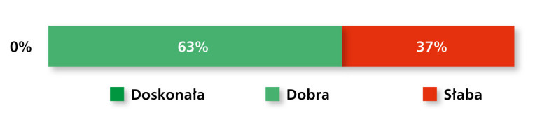 najnowszej edycji badania, przeprowadzonej we wrześniu, nastroje wśród dystrybutorów komponentów automatyki oraz dostawców produktów MRO można określić jako umiarkowanie pozytywne. Aż 63% respondentów oceniło sytuację w branży jako "dobrą", podczas gdy 37% uznało ją za "słabą" (rys. 1). Brak wskazań w kategorii "doskonała" sugeruje, że choć rynek funkcjonuje stabilnie, wśród przedsiębiorstw dominuje ostrożność i świadomość wyzwań, z którymi branża musi się mierzyć.
