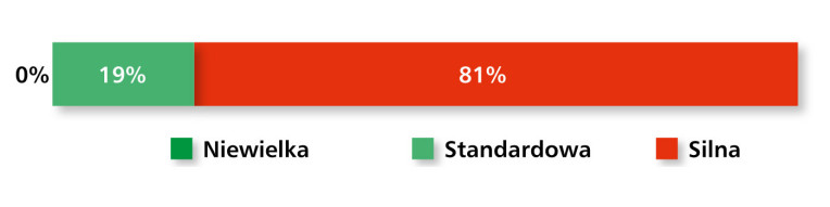 Struktura odpowiedzi dotyczących poziomu konkurencji na omawianym rynku pozostaje jednoznaczna – 81% uczestników badania wskazało, że jest ona silna, a pozostałe 19% oceniło ją jako "standardową". Podobnie jak w poprzednich latach, nikt nie uznał konkurencji za niewielką (rys. 2).