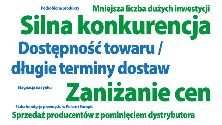 Respondenci zwracali również uwagę na sprzedaż bezpośrednią prowadzoną przez producentów z pominięciem kanałów dystrybucyjnych oraz na spadek liczby dużych inwestycji przemysłowych, co ogranicza potencjał rozwoju w segmencie projektowym. W tle tych problemów pozostają czynniki makroekonomiczne – spowolnienie w przemyśle europejskim, obecność produktów podrobionych i stagnacja rynkowa, które wspólnie osłabiają dynamikę wzrostu sektora.