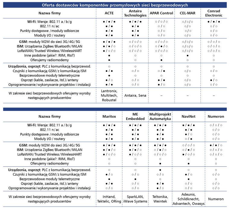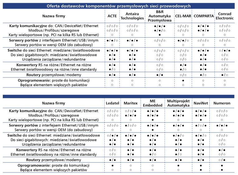 Istotne wyniki ankiety zaprezentowaliśmy nie tylko na kilkunastu rysunkach, ale także w kilku tabelach, które dają bardzo szczegółowy obraz krajowego rynku urządzeń do komunikacji przemysłowej, zarówno przewodowej, jak i bezprzewodowej. Można z tych tabel dowiedzieć się, jakie komponenty przemysłowych sieci przewodowych i bezprzewodowych, jakich marek i w jakich standardach sieciowych oferują poszczególne firmy liczące się na krajowym rynku. Chociaż rozwój sieci przemysłowych przynosi wiele korzyści (takich jak zwiększenie wydajności, poprawa bezpieczeństwa i lepsza kontrola nad procesami produkcyjnymi), to istnieją liczne bariery, które firmy muszą pokonać, aby w pełni wykorzystać potencjał tych technologii. Oto kilka głównych wyzwań stojących przed przedsiębiorstwami.