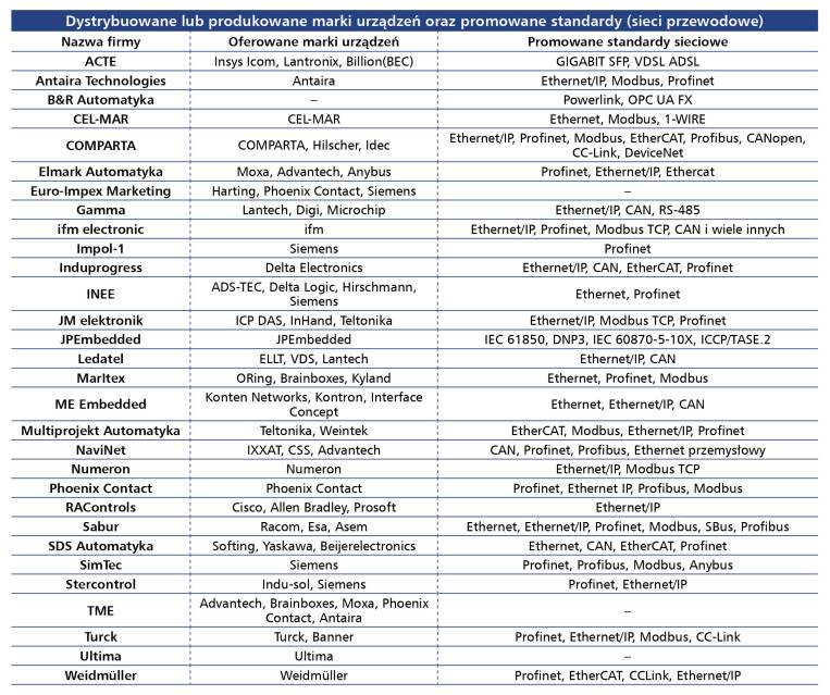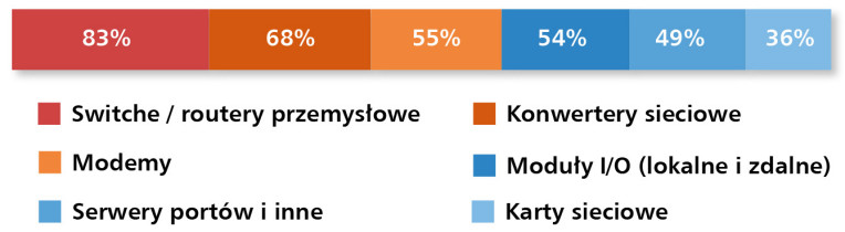 Na pytanie o najbardziej popularne, najczęściej sprzedawane w kraju komponenty przemysłowych przewodowych sieci komunikacyjnych, najwięcej wskazań uzyskały switche i routery (rys. 4).