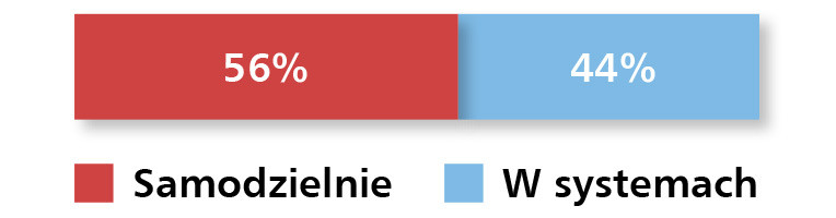 Szacunkowe oceny wartości polskiego rynku sieci przewodowych dla przemysłu nie zmieniły się w ostatnim roku. Odrzucając odpowiedzi skrajne, większość ankietowanych dostawców szacuje wartość krajowego ryku na poziomie ok. 300 mln zł. W porównaniu z badaniem zeszłorocznym (rys. 12) wzrósł udział sprzedaży oddzielnych produktów (z 46 do 56%) przy spadku sprzedaży kompletnych systemów (z 54 do 44%). Jest to tendencja odwrotna do obserwowanej ogólnie dla automatyki przemysłowej, gdzie klienci preferują zakup kompletnych systemów i gotowych rozwiązań, zamiast integrować samodzielnie systemy z oddzielnych komponentów.