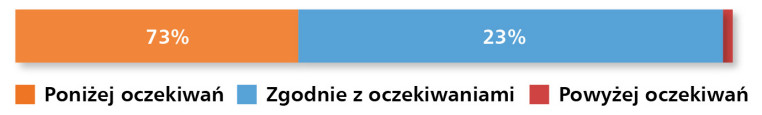 Interesująca jest ocena przez dystrybutorów tempa wdrażania technologii 5G, opisywanej od lat jako przełomowej. Ponieważ wyraźnie obserwuje się, że ciągle ma ona status „świetnie zapowiadającej się”, zadaliśmy w ankiecie pytanie o ocenę tempa jej wprowadzania do komunikacji w przemyśle (rys. 16). W zasadzie nie byliśmy zaskoczeni, że ocen „powyżej oczekiwań” było zero, natomiast „poniżej oczekiwań” aż 73%.