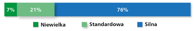 Polski rynek PLC i PAC cechuje wysoki poziom konkurencji. 76% uczestników badania określiło ją jako silną, co potwierdza, że firmy działające w tym sektorze muszą rywalizować nie tylko ceną, ale także jakością produktów, dostępnością wsparcia oraz innowacyjnością technologii (rys. 12). 21% respondentów uznało konkurencję za standardową, natomiast 7% ocenia ją jako niewielką, co oznacza, że w niektórych niszowych segmentach rynkowych dominuje ograniczona liczba dostawców.