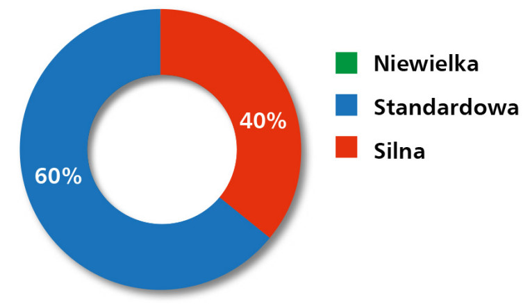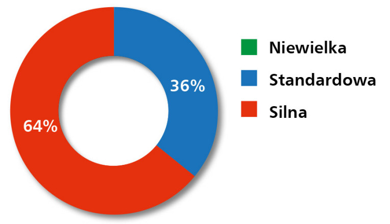 Ocena konkurencji w segmencie elementów wykonawczych nie pozostawia wątpliwości – to branża o wysokim stopniu nasycenia. 64% respondentów wskazało, że konkurencja jest silna, a pozostałe 36% uznało ją za standardową – brak jakichkolwiek głosów o niskim poziomie rywalizacji (rys. 17) pokazuje, że rynek nie oferuje przestrzeni dla przeciętnych ofert. Przewagę zyskują dziś ci dostawcy, którzy potrafią połączyć atrakcyjną cenę z szerokością portfolio, dostępnością magazynową oraz elastycznością technologiczną – szczególnie istotną przy dopasowywaniu komponentów do złożonych aplikacji systemowych.