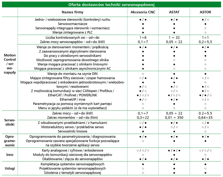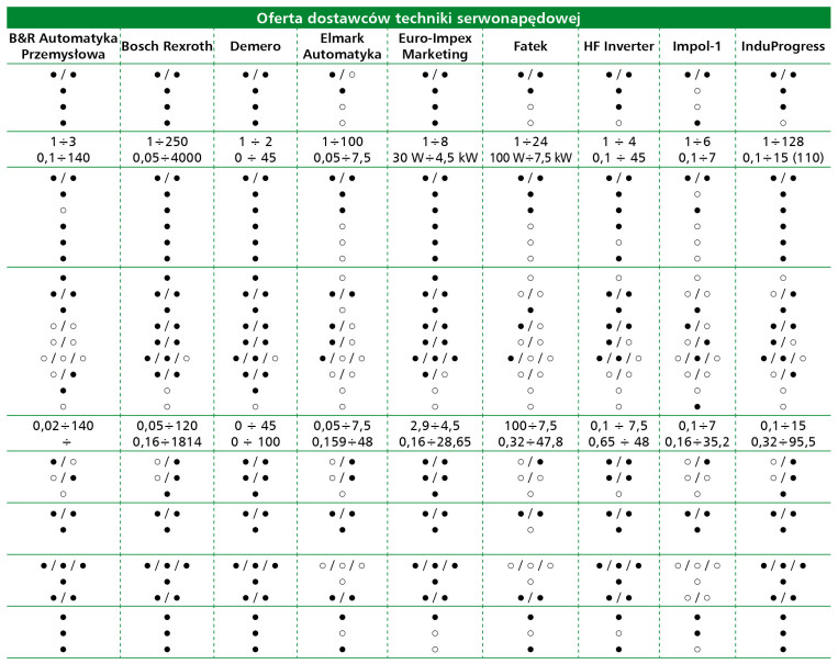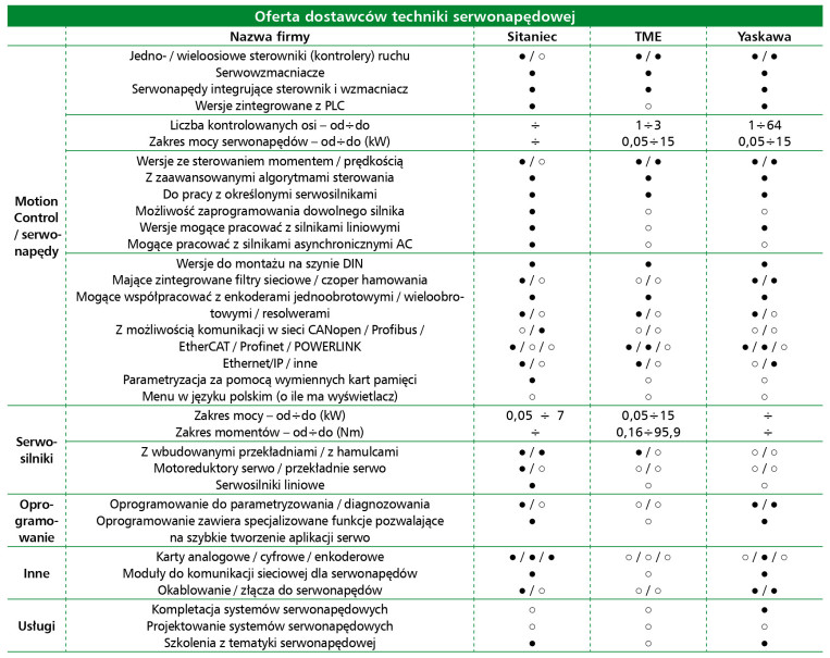 Kluczowym elementem automatyzacji procesów precyzyjnych są serwonapędy. Według danych raportu, 50% firm ocenia koniunkturę w tym segmencie jako dobrą, a 39% jako bardzo dobrą. Głównymi użytkownikami są producenci maszyn (98%) i integratorzy (76%). Najczęściej stosowane systemy pochodzą od firm Mitsubishi, Siemens, Omron, Yaskawa, Beckhoff i Delta. Nowe rozwiązania oferują funkcje bezpieczeństwa STO i SafeMotion, interfejsy EtherCAT, zintegrowane czujniki momentu i synchronizację wielu osi. Zastosowania obejmują robotykę, automatykę pakującą, obróbkę CNC oraz intralogistykę.