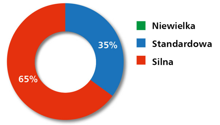 Wysoki stopień nasycenia rynku znajduje również potwierdzenie w danych dotyczących konkurencji. Aż 65% ankietowanych określa ją jako silną, a 35% jako standardową – nikt nie uznał jej za niewielką (rys. 3). Oznacza to, że rynek przemienników i silników AC nie stanowi przestrzeni dla ofert przeciętnych – bariera wejścia pozostaje wysoka, a lojalność klientów często buduje się latami. W takim środowisku wyróżniają się ci dostawcy, którzy oferują więcej niż tylko katalogowy produkt: stabilność dostaw, kompetencje doradcze, wsparcie posprzedażowe i gotowość do integracji urządzeń z systemami sterowania wyższego rzędu. Konkurencja w tym segmencie to proces – nie jednorazowe porównanie parametrów, ale ciągłe potwierdzanie jakości w czasie.
