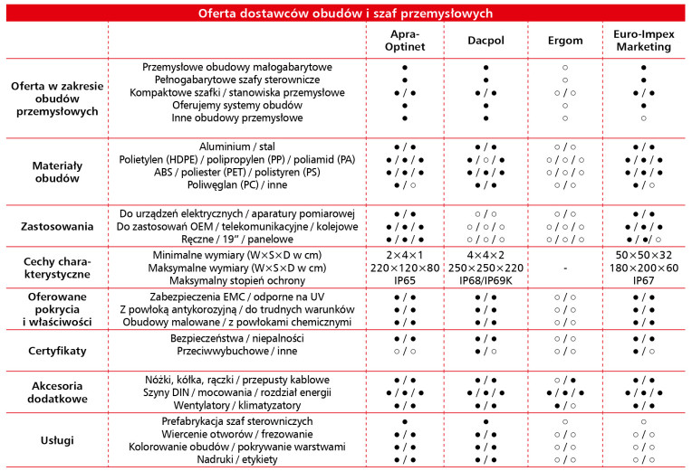 Na liście znalazły się również takie obszary jak: automatyka i automatyka budynkowa, budownictwo, banki energii, dystrybucja, IT, ładowarki pojazdów elektrycznych, produkcja OEM, przemysł procesowy oraz inne gałęzie przemysłu, wymagające integracji systemów sterowania i zabezpieczeń. Tak szerokie spektrum wskazań pokazuje, że rynek obudów i szaf przemysłowych funkcjonuje w wielu sektorach równocześnie, a zapotrzebowanie na tego typu produkty jest generowane zarówno przez tradycyjnych odbiorców, jak i przez nowe branże związane z transformacją energetyczną oraz cyfryzacją.