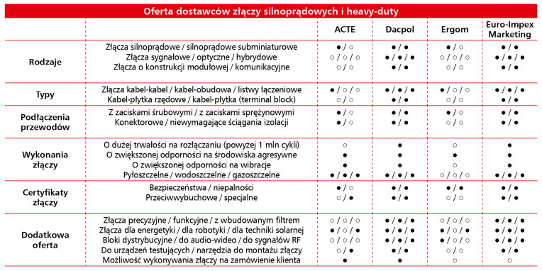Wśród pojedynczych, ale istotnych wskazań znalazły się rozwiązania związane z większą standaryzacją, modułowością i miniaturyzacją, czyli trendami od lat obecnymi w branży, ale wciąż rozwijającymi się pod kątem funkcjonalności i dopasowania do różnorodnych aplikacji. Wskazywano także na pojawienie się złączy silnoprądowych wyposażonych w rozłącznik oraz system interlock, co zwiększa bezpieczeństwo pracy, a także złączy przeznaczonych do pojazdów elektrycznych, co odzwierciedla dynamiczny rozwój elektromobilności.