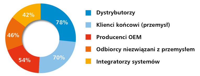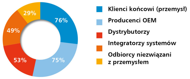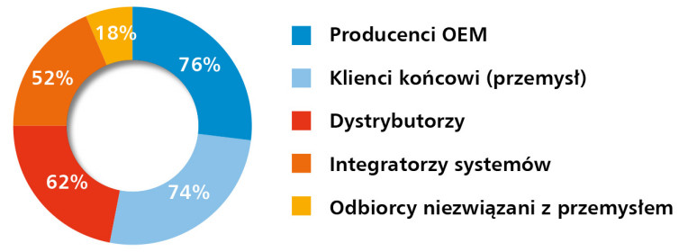 W porównaniu z poprzednią edycją raportu, w której na czoło wysuwali się producenci OEM i integratorzy systemów, obecne dane wskazują na rosnące znaczenie dystrybutorów jako głównego kanału sprzedaży. Dodatkowo widoczna jest także większa obecność odbiorców spoza przemysłu, co może świadczyć o stopniowej dywersyfikacji rynku i poszerzaniu grona klientów o nowe segmenty, np. budownictwo czy automatykę budynkową.