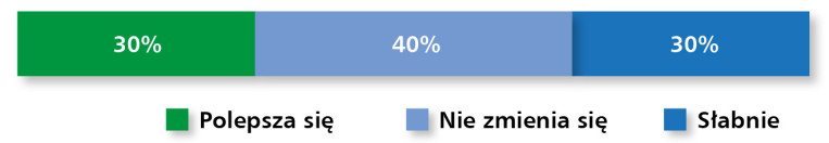 Oceny dotyczące koniunktury potwierdzają podział nastrojów – 30% ankietowanych wskazało na jej poprawę, 40% uznało, że pozostaje ona bez zmian, a kolejne 30% dostrzega symptomy spowolnienia (rys. 20). Oznacza to, że rynek znajduje się w stanie równowagi między oczekiwaniami poprawy a realnym spadkiem dynamiki w części sektorów przemysłowych.