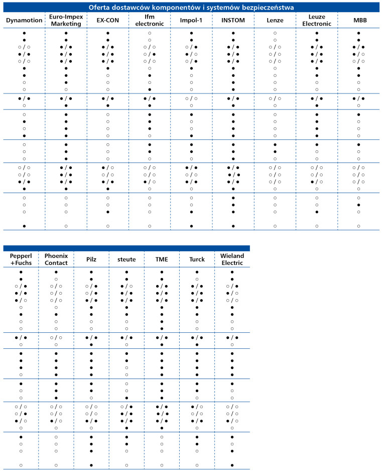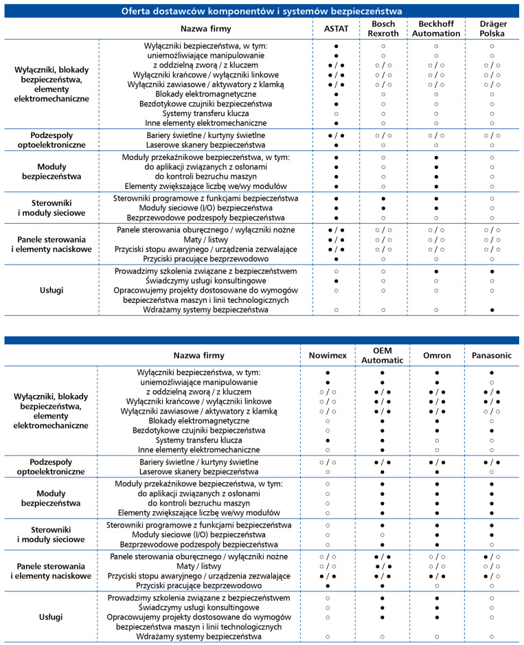 W zestawieniu pojawiają się również takie marki, jak Bosch Rexroth, Eaton, Idem, Keyence, ReeR, Satech, Siemens, Simatic Fail-Safe, Sinamics Fail-Safe, Traco Power, Turck czy Werma. Wymienione firmy oferują zróżnicowane portfolio, obejmujące zarówno komponenty bezpieczeństwa, jak i urządzenia wspomagające sygnalizację, komunikację przemysłową czy monitoring funkcjonalny. Ich obecność na rynku potwierdza z jednej strony szeroki zakres oferowanych technologii, a z drugiej – fakt, że komponenty safety coraz częściej stanowią integralną część systemów automatyki, a nie odrębną kategorię.