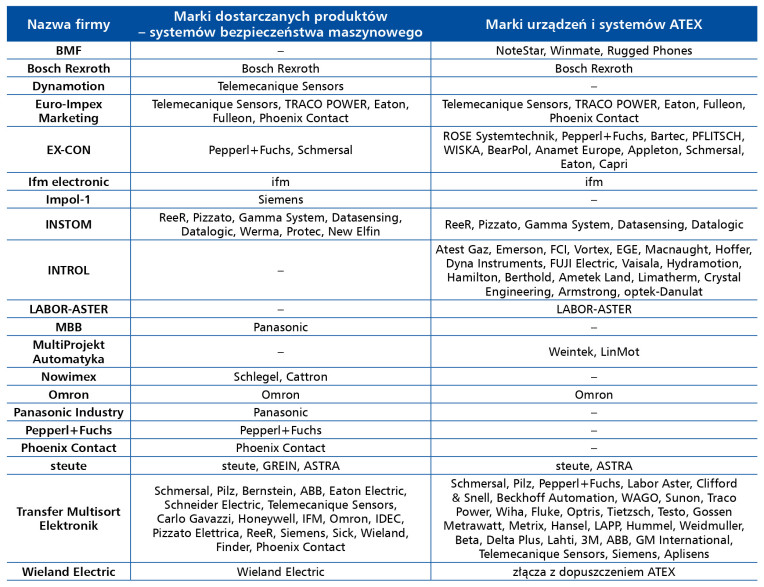 Wysoko oceniana pod względem rozpoznawalności jest również marka Eaton, a także firmy takie jak LABOR- ASTER i Phoenix Contact, które znalazły się na kolejnych miejscach w zestawieniu. W grupie rozpoznawalnych producentów pojawiły się także Beckhoff Automation, Bosch Rexroth, Pepperl+ Fuchs, Steute, Pizzato, Endress+ Hauser, WAGO, ReeR, Traco Power i inne firmy – często oferujące produkty ATEX jako element szerszego portfolio z zakresu automatyki lub osprzętu przemysłowego.