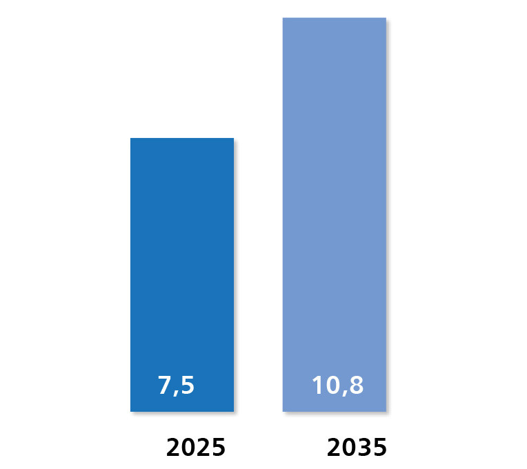 Zagrożenie w przemyśle stanowią również zapłony i eksplozje atmosfer wybuchowych, które występują na stanowiskach pracy m.in. w przemyśle naftowym, chemicznym czy w górnictwie. W takich warunkach wymagane jest korzystanie z wyposażenia dopuszczonego do użytkowania w strefach zagrożonych wybuchem, które spełnia wytyczne odpowiednich przepisów, takich jak dyrektywa Unii Europejskiej ATEX. Według Future Market Insights wartość globalnego rynku tego typu sprzętów zwiększy się z 7,5 mld dol. w 2025 r. do prawie 11 mld dol. w 2035 r., co oznacza stabilny średni wzrost o ponad 3% rocznie (rys. 2).