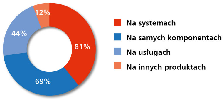 Sprzedaż pojedynczych komponentów nadal odgrywa istotną rolę – wskazało ją 69% ankietowanych – jednak to systemowe podejście, integrujące urządzenia różnych klas i przeznaczenia, jest coraz częściej preferowane przez klientów. Usługi inżynierskie, choć wskazywane rzadziej (44%), w wielu przypadkach stanowią nieodłączny element procesu wdrożeniowego: od audytów i konsultacji, przez opracowanie dokumentacji, aż po uruchomienie i szkolenia użytkowników. Pozostałe źródła przychodu, takie jak sprzedaż produktów powiązanych, mają raczej marginalne znaczenie (12%).