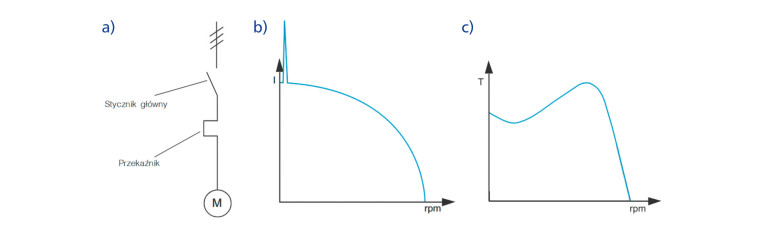 Charakterystyczną cechą i zarazem główną wadą rozruchu bezpośredniego jest bardzo duży prąd rozruchowy (rys. 1b). Zazwyczaj jest on równy 5‒8-krotności prądu znamionowego silnika, chociaż możliwe są wartości jeszcze wyższe, które nawet kilkunastokrotnie przekraczają prąd znamionowy. Wpływa na to konstrukcja silnika – im niższa rezystancja uzwojeń, tym prąd rozruchowy staje się większy, co jest typowe dla nowszych modeli silników.