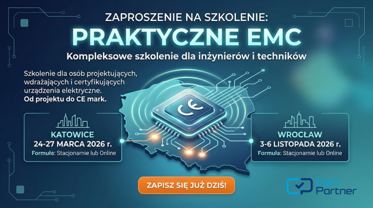 Cert Partner zaprasza na szkolenie przeznaczone dla osób, które projektują, wdrażają, odbierają lub certyfikują urządzenia elektryczne i chcą rozumieć, jak spełnić wymagania EMC w praktyce - od projektu, przez badania, aż po oznaczenie CE.