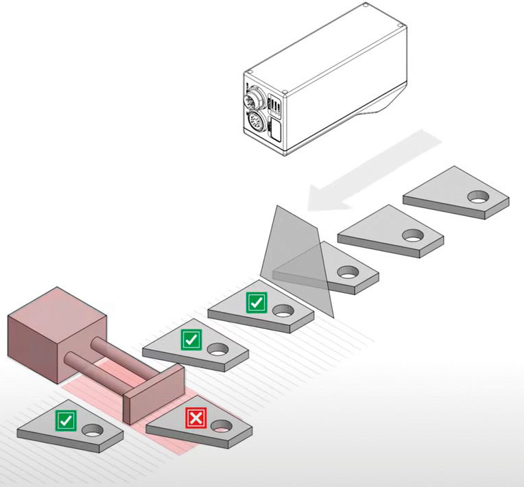 Gocator to inteligentny skaner 3D, który samodzielnie wykonuje cały proces kontroli jakości w czasie rzeczywistym. Urządzenie automatycznie skanuje obiekt, tworzy jego trójwymiarowy model (chmurę punktów), rozpoznaje poszczególne części, obraca je w razie potrzeby, dzieli na sekcje, dokonuje pomiarów i na końcu podejmuje decyzję – czy dana część przechodzi kontrolę, czy nie.