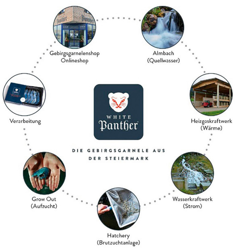 Istnieje jednak inny sposób: akwakultury do hodowli krewetek w Alpach z dala od wybrzeży. White Panther Produktion GmbH jest jednym z największych zakładów hodowlanych w Europie. W miejscowości Rottenmann w austriackiej Górnej Styrii firma hoduje białe krewetki tygrysie (Litopenaeus Vannamei) i niebieskie krewetki górskie (Litopenaeus Stylirostris) – przysmaki szczególnie cenione przez smakoszy. A po ukończeniu budowy wznoszonego obecnie obiektu, każdego roku zbiorniki hodowlane będzie opuszczać ok. 60 ton tych przysmaków. Jako jedyna tego typu wytwórnia w Europie, White Panther nie tylko wykorzystuje postlarwy do własnej hodowli, ale także zaopatruje 48 krytych farm krewetek w Europie i okolicach.
