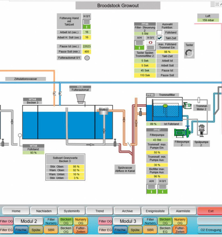 Aby osiągnąć odpowiednią szybkość usuwania azotanów i utrzymać wydajną cyrkulację wody, elementy sterujące systemu trzeba często regulować podczas pracy. Pichlmaier podkreśla, że wiele ustawień nadal wymaga stopniowej optymalizacji, aby osiągnąć docelową produkcję na poziomie 60 ton krewetek rocznie. Pod tym względem zenon zapewnia wyraźną przewagę, ponieważ regulacja polega jedynie na ustawianiu parametrów, bez potrzeby programowania.