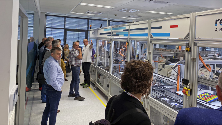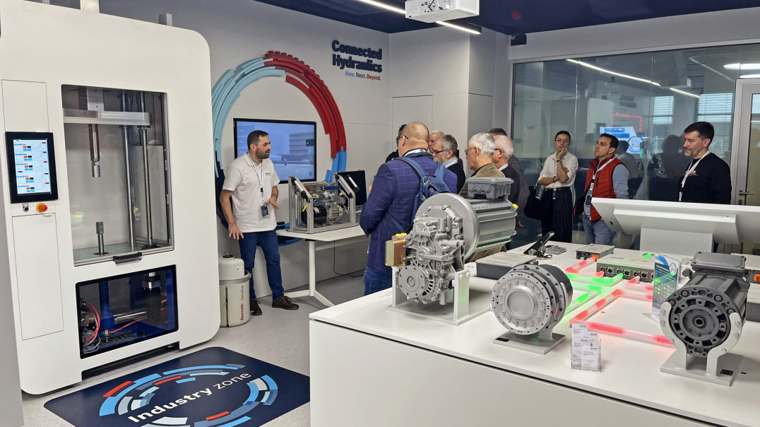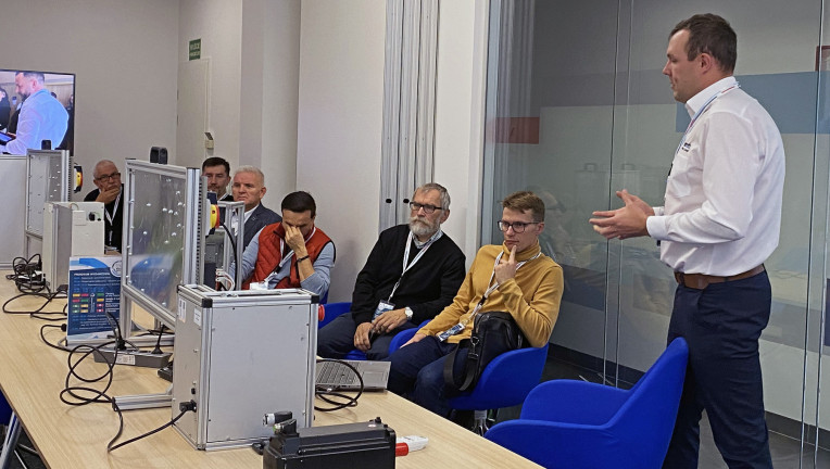 Uczestnicy mieli okazję zwiedzić showroom CU.BE, składający się z dwóch wyjątkowych sal: Factory of the Future Lab i Mobile & Industrial World. Factory of the Future Lab skupia się na prezentacji nowoczesnych rozwiązań w zakresie automatyzacji przemysłowej i przemysłu 4.0, symulując warunki fabryki przyszłości. Odwiedzający mogli zapoznać się z edukacyjną linią produkcyjną wyposażoną w systemy sterowania, różnego rodzaju roboty oraz licznymi innymi technologiami, które kształtują nowoczesne środowisko produkcyjne. Takie kompletne środowisko wraz z oprogramowaniem jesteśmy w stanie przenieść do pracowni dydaktycznej w szkole czy na uczelni technicznej. Z kolei Mobile & Industrial World koncentruje się na rozwiązaniach mobilnych i aplikacjach przemysłowych oraz efektywności energetycznej w przemyśle. Tutaj oprócz nowości w dziedzinie hydrauliki mobilnej czy przemysłowej uwagę przykuwały małe trenażery z elektroniki mobilnej, możliwe do wykorzystania nawet w małych salach.