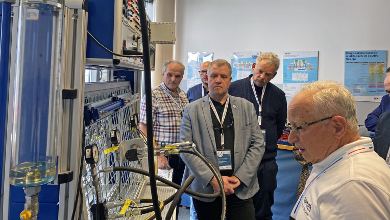 W pracowni hydrauliki siłowej na uczestników wydarzenia czekały przykładowe zadania praktyczne przygotowane na stanowisku dydaktycznym Hydraulix 300, przekroje elementów hydraulicznych oraz szereg innych pomocy dydaktycznych – od plakatów i podręczników po animacje techniczne wykorzystywane w procesie nauki.